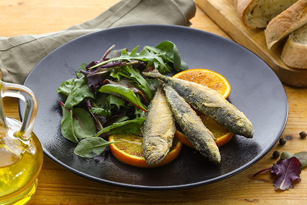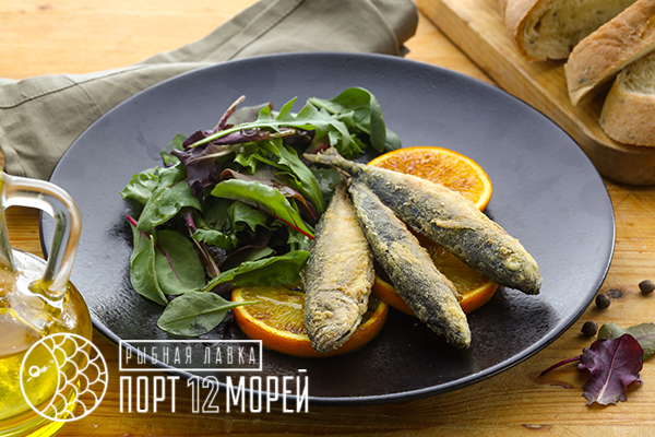 - Филе ставриды побрызгать лимонным соком. Нарезанную зелень пожарить на масле. Далее филе посолить, поперчить и положить в кастрюлю к обжаренной зелени, полить сметаной, доложить 2 кусочка апельсина, посыпать сыр и поставить в духовку на двадцать минут. В качестве гарнира можно подать рис.