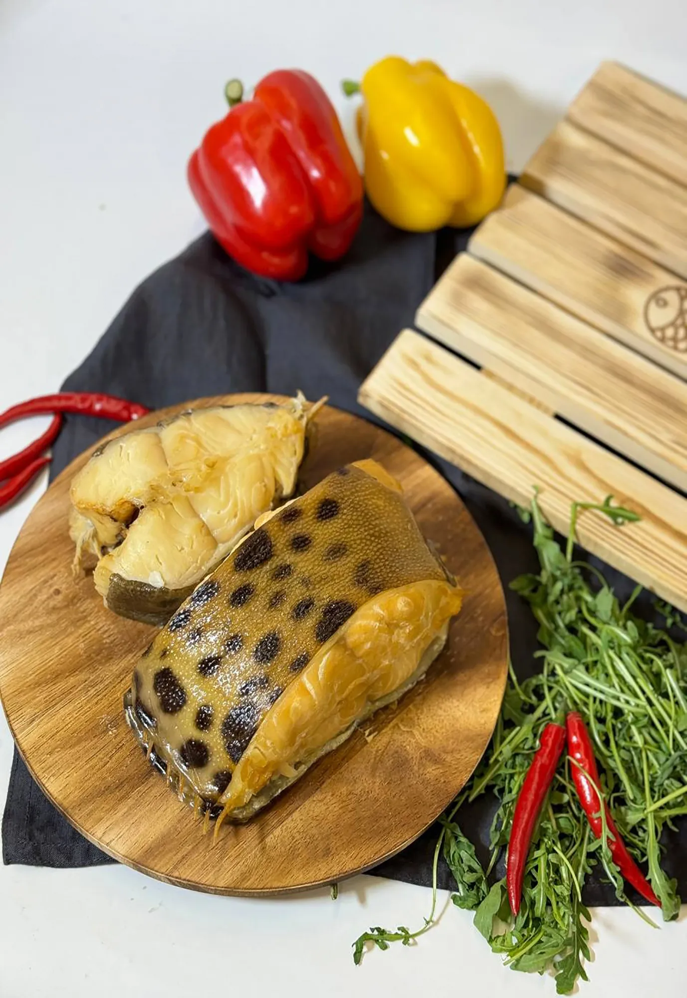 В салатах: Копченая зубатка отлично сочетается с различными салатами, добавляя блюду насыщенный вкус и текстуру.